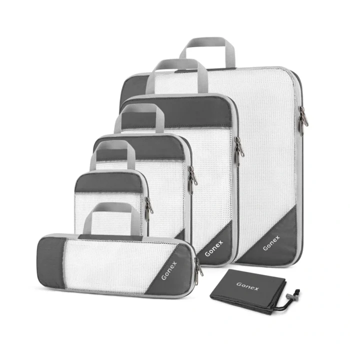 Gonex Packwürfel Set mit Kompression – 6-teilig, leicht & platzsparend. Mit Mesh-Oberseite, Kompressionsfunktion & wasserabweisendem Nylon.