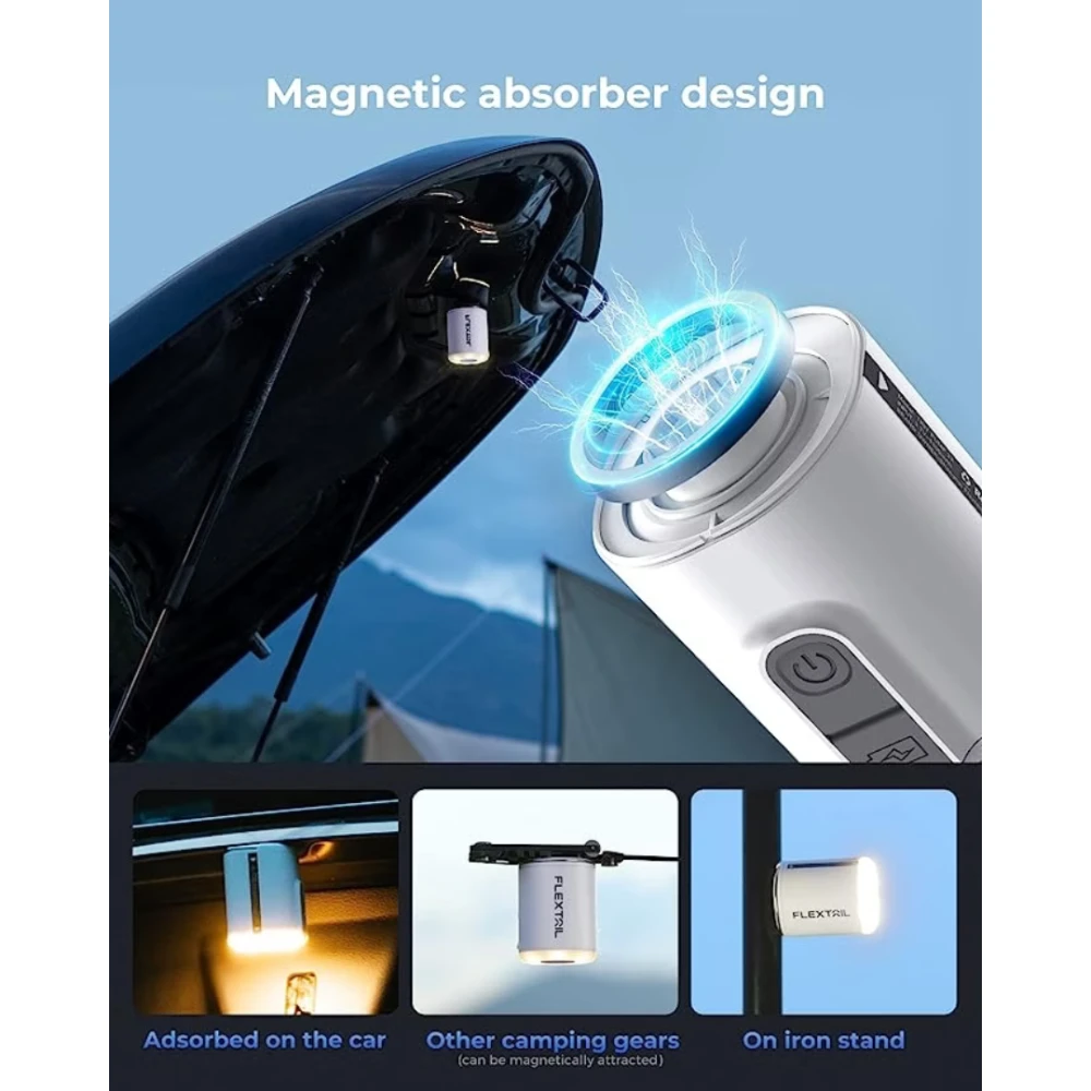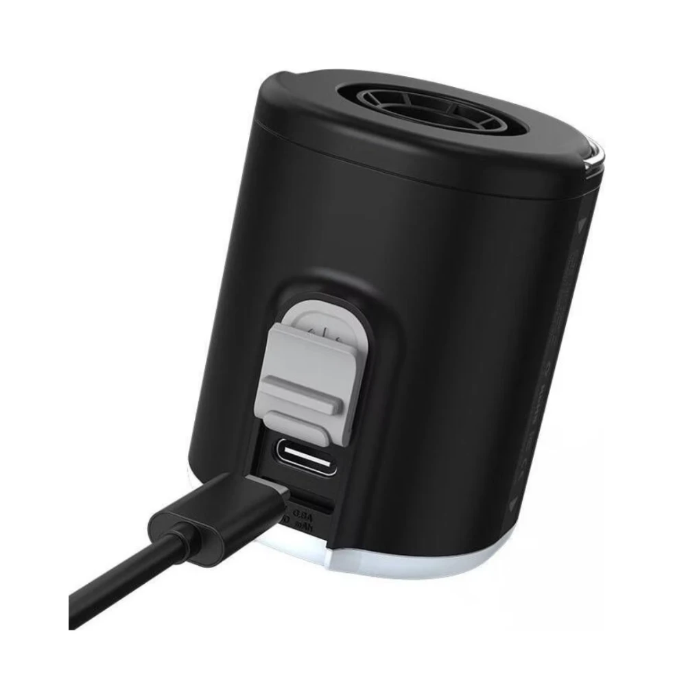 Magnetische Outdoor Luftpumpe mit integrierter Camping Lampe. Ideal für schnelles Aufblasen und Ablassen von Luftmatratzen, Vakuumbeutel und Spielbällen beim Camping oder am Strand.
